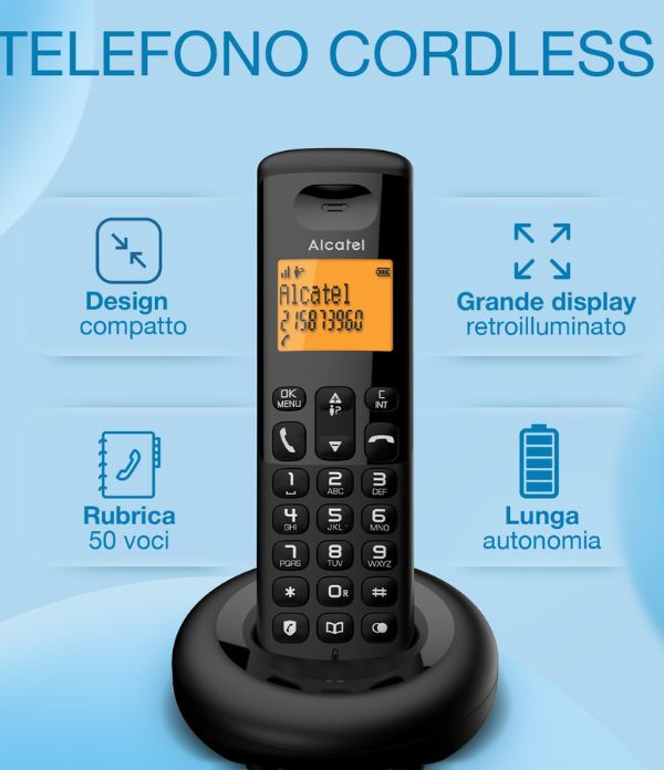Non perdere l'opportunità di rendere le tue comunicazioni più semplici e stilose con il Telefono Cordless Alcatel E160 Duo Black.